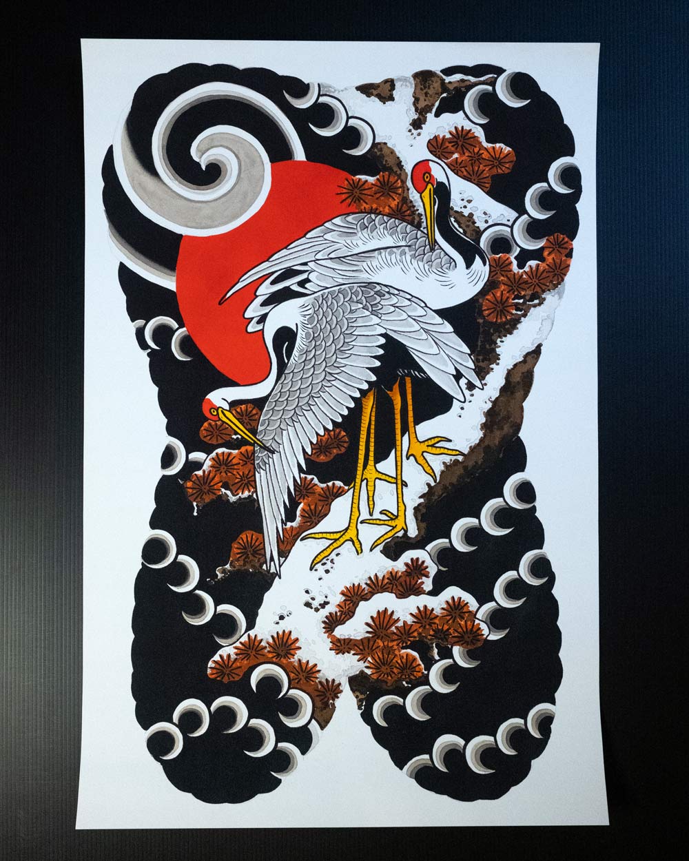 Indulge in the timeless allure of Japanese tattoo art with our exquisite Japanese Cranes Backpiece Print, meticulously crafted to capture the essence of tradition and mastery. Each print is a masterpiece, meticulously designed to adorn your walls with the rich tapestry of Japanese culture and symbolism. Immerse yourself in a realm of mythical creatures. Delicate cherry blossoms and swirling waves await, as our prints whisk you away to the essence of ancient Japan. Elevate your space with the unmatched beauty and grace of Japanese tattoo artistry. Allow your walls to narrate a tale of passion, strength and profound elegance with our Japanese Cranes Backpiece Print.