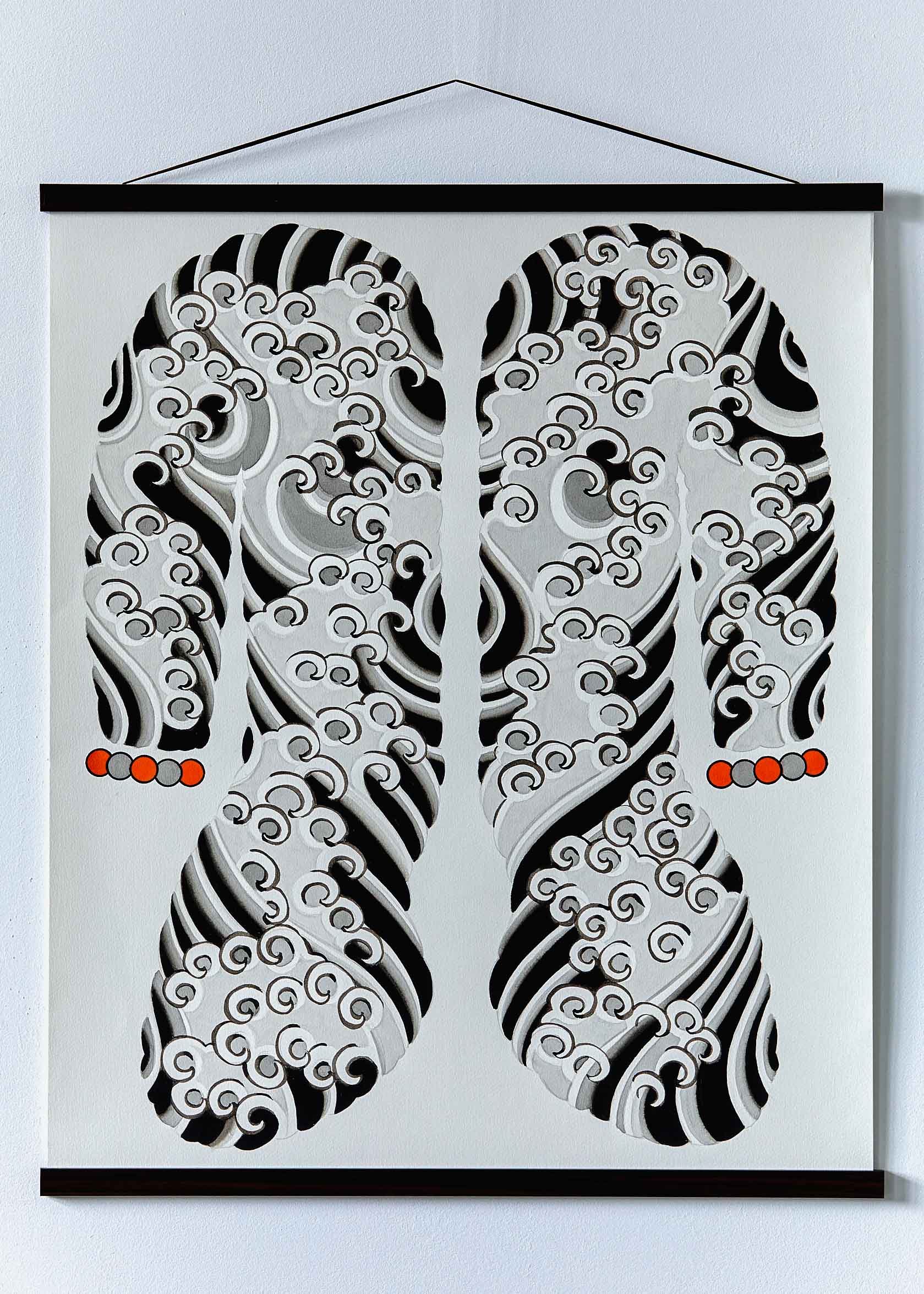 For years, Swen has actively pursued the study of Japanese art and tattooing. He meticulously crafts his prints on the finest 190gsm Hahnemühle William Turner paper. Their rough texture closely resembles the original paintings, making it difficult to distinguish between the originals and the prints. We owe this top quality to our partner, Manifest Projects from Hannover, Germany.
